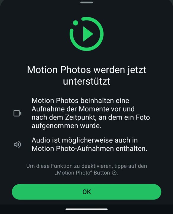 Bisher wurden diese kurzen Bewegtbildsequenzen beim Versand in ein statisches Bild umgewandelt. Zukünftig bleiben die Bewegung und der dazugehörige Ton erhalten. Die Funktion soll plattformübergreifend kompatibel sein, sodass ein von einem iPhone gesendetes Live Photo auf einem Android-Gerät als Motion Photo wiedergegeben wird und umgekehrt.