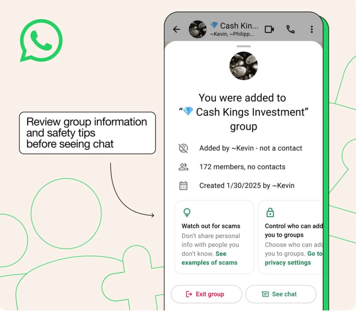 Meta erweitert die Sicherheitsfunktionen von WhatsApp mit neuen Features gegen Betrugsversuche. Der Messenger-Dienst hat laut eigener Aussagen bereits über 6,5 Millionen Konten gesperrt, die mit kriminellen Aktivitäten in Verbindung gebracht wurden. In Gruppenchats führt WhatsApp eine neue Sicherheitsübersicht ein. Diese wird angezeigt, wenn ein unbekannter Nutzer einen zu einer Gruppe hinzufügt. Die Übersicht zeigt wichtige Informationen zur Gruppe und gibt Sicherheitshinweise. Nutzer sehen direkt, ob die einladende Person oder andere Gruppenmitglieder zu den eigenen Kontakten gehören.