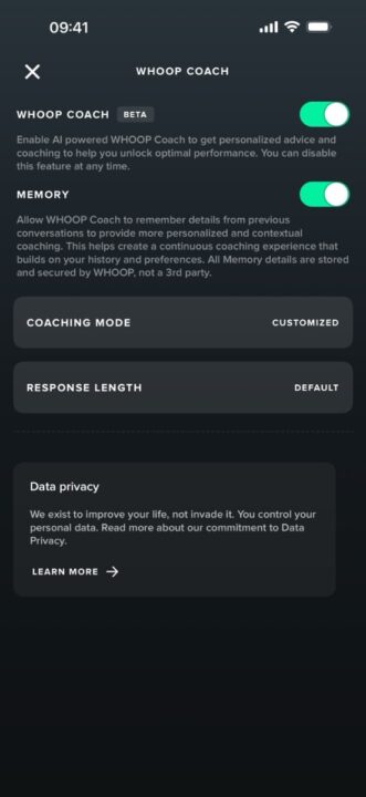 Das Unternehmen gibt dem smarten Helfer nun ein Gedächtnis. Das heißt, dass der Coach sich analog zu ChatGPT jetzt an vergangene Gespräche erinnern kann. „Euer“ Gedächtnis wird auf WHOOP-Servern gespeichert, es sind laut Unternehmensangaben keine Drittanbieter involviert.