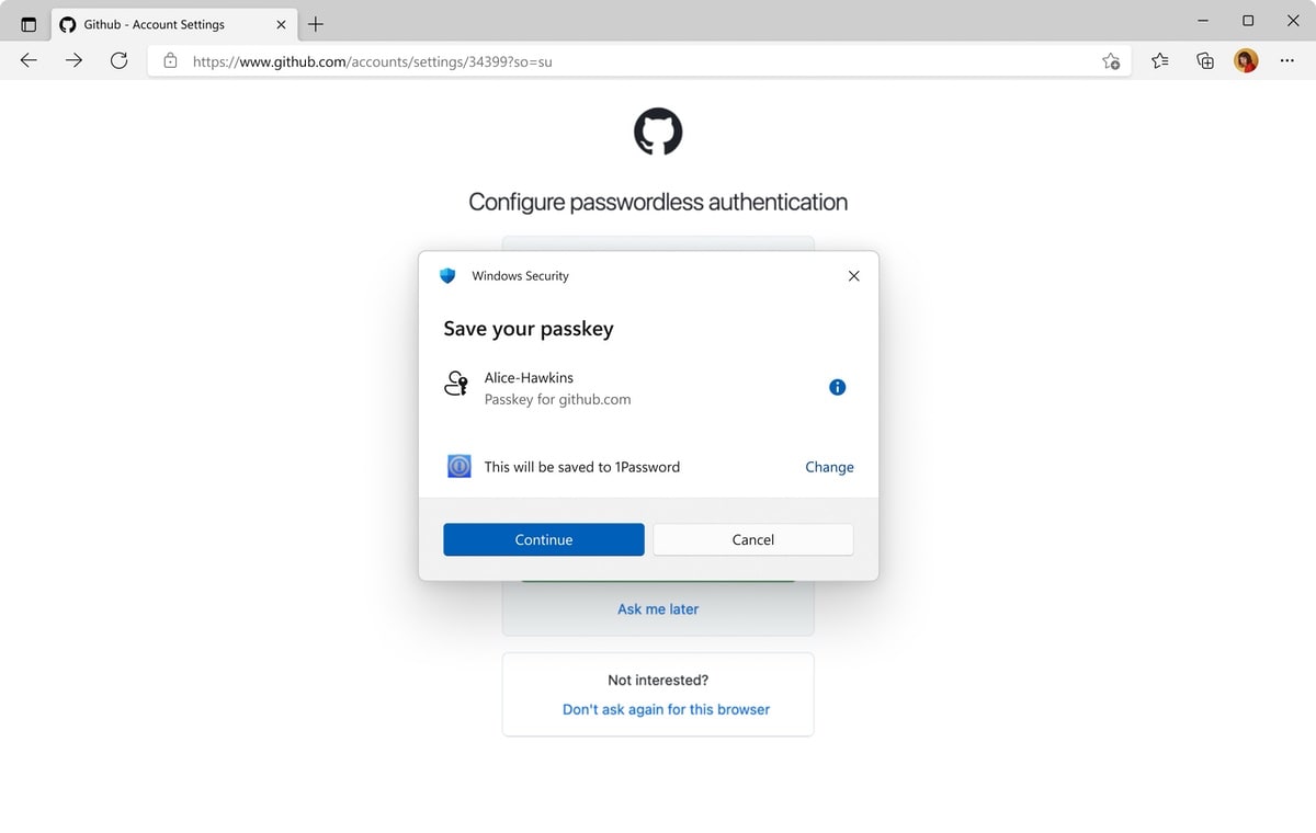 Den Anfang machte ja bereits 1Password, das als erster Drittanbieter die neue Funktion unterstützt. Weitere Passkey-Manager sollen folgen. Die Integration funktioniert über eine neue Plugin-Schnittstelle, die es Credential-Managern erlaubt, sich direkt in Windows einzuklinken. Passkeys lassen sich dann browserübergreifend und in nativen Apps nutzen. Die Einrichtung des bevorzugten Managers läuft über den Passkey-Erstellungsprozess. Für die Authentifizierung kommt Windows Hello zum Einsatz, wahlweise per PIN, Gesichtserkennung oder Fingerabdruck.