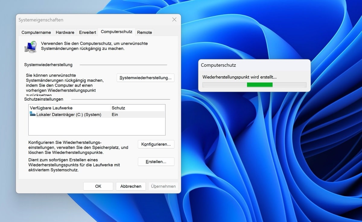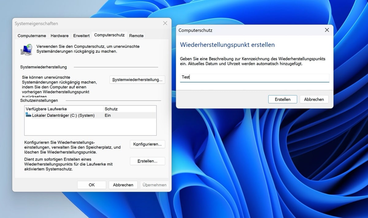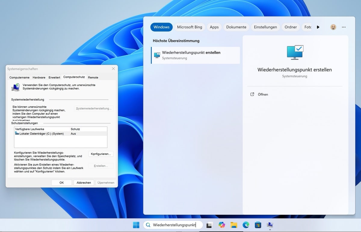 Die Systemwiederherstellung ist ein Werkzeug, das Windows-Nutzern hilft, bei Problemen zu einem früheren, funktionierenden Systemzustand zurückzukehren. Um einen Wiederherstellungspunkt manuell zu erstellen, können Nutzer einfach „Wiederherstellungspunkt“ in die Suche eingeben (alternativ Win + R, sysdm.cpl eingeben und dann den Reiter Computerschutz anspringen).