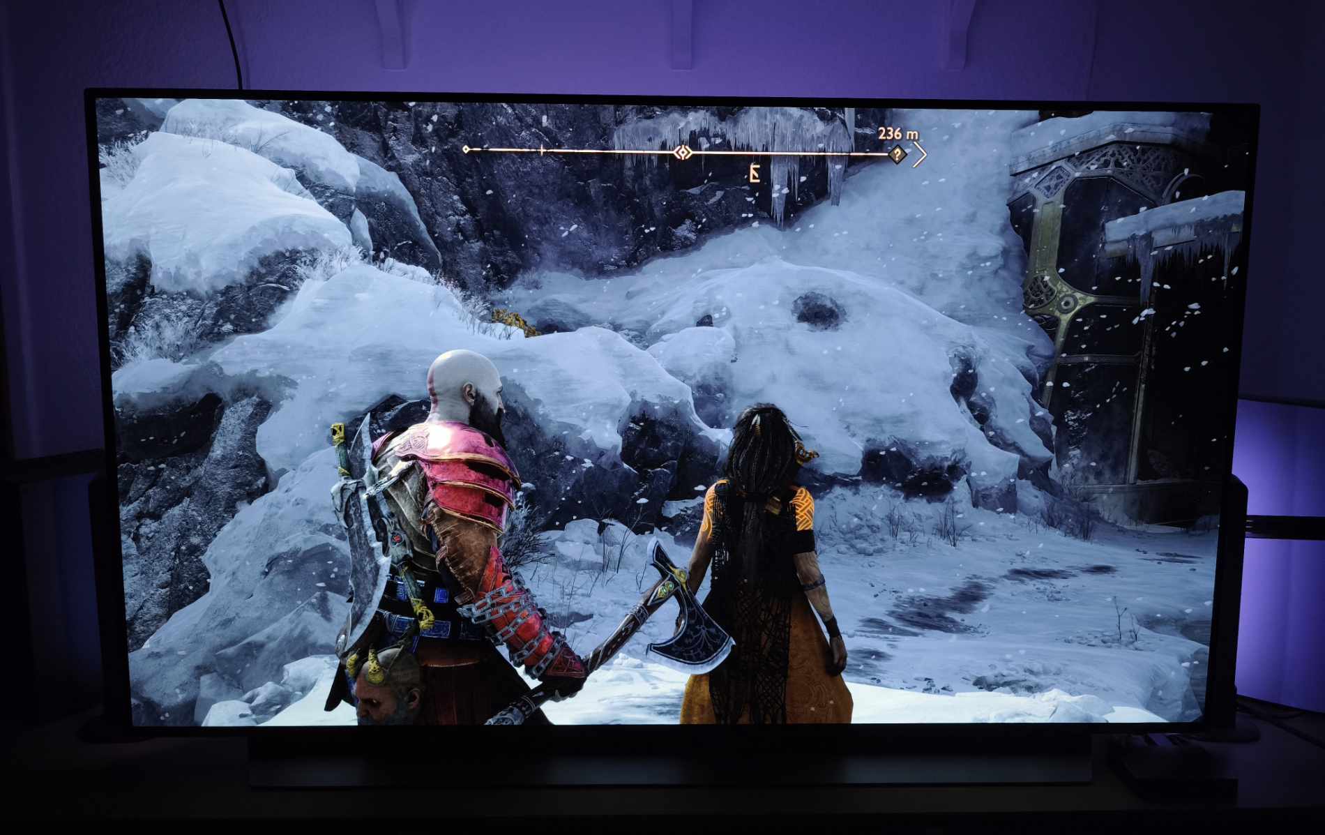 Da der LG OLED C9 einen sehr niedrigen Ständer einsetzt, ergab die horizontale Aufstellung der Gradient Lught Bar in meinem Fall keinen Sinn. Letzten Endes ist mein Setup ohnehin mit Xbox Series X links und PS5 Pro rechts ziemlich vollgepackt, doch die Light Bars haben da durchaus noch ihren Platz gefunden. In meinem Szenario habe ich sie eher dezent eingestellt, weil mich sonst beim Spielen die Geräte zu sehr „angrinsen“.