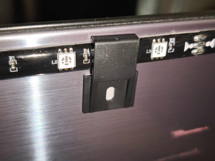 Auch den RGBIC-LED-Strip der WiZ HDMI Sync Box musste ich deswegen krümmen, sodass er teilweise in der Luft hängt (siehe oben). Dennoch sitzt die Konstruktion sicherer, weil der Streifen selbst deutlich schmaler und leichter ist. Da der Strip sowohl für Smart-TVs mit 55 als auch 65 Zoll Diagonale gedacht ist, steht er aber bei meinem C9 mit 55 Zoll fast über. Hier musste ich sehr darauf achten, Millimeterarbeit zu verrichten.