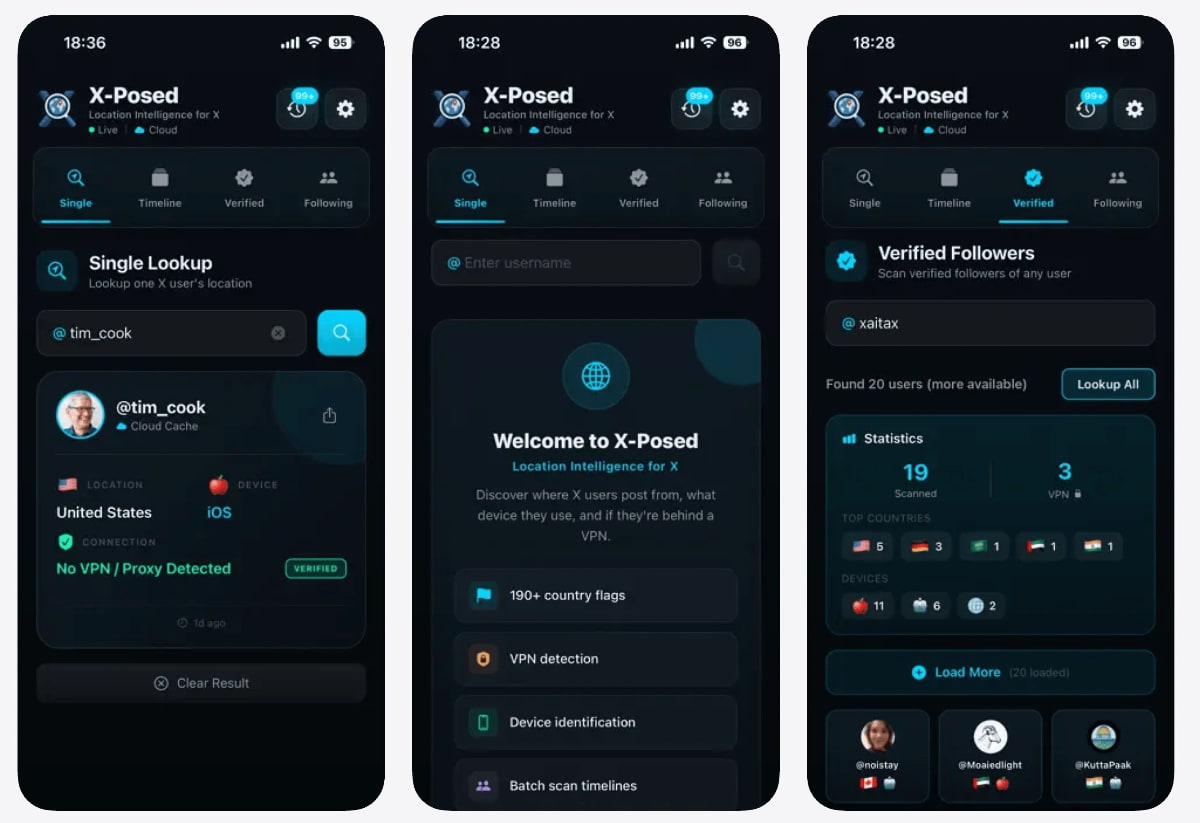 Jetzt ist die App auch für iOS im App Store gelandet und bringt die Standort- und Geräte-Anzeige auf iPhone und iPad. Die App hängt sich an den eigenen X-Account und wertet dort öffentliche Infos aus. Laut Entwickler gibt es vier Scan-Modi: einzelne Accounts prüfen, die eigene Timeline scannen sowie Follower- und Following-Listen analysieren. Ergebnis sind Hinweise zum mutmaßlichen Land und zum genutzten Gerätetyp der jeweiligen Accounts. Dazu kommt ein natives iOS-Interface und ein Login, der nach eigenen Angaben transparent und abgesichert läuft.