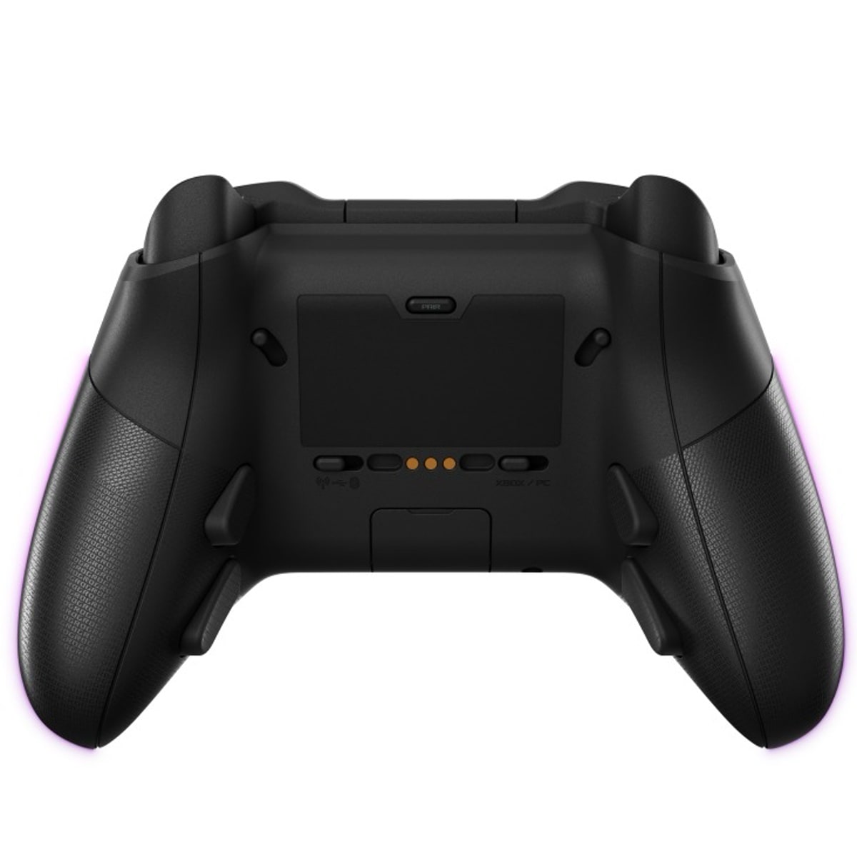 Zur Ausstattung gehören vier programmierbare Tasten auf der Rückseite und Dual-Mode-Trigger. Letztere lassen sich zwischen Mikroschalter-Triggern mit kurzem Hub und TMR-Sensor-Triggern mit vollem Hub umschalten. Das Steuerkreuz, die ABXY-Tasten und die Schultertasten nutzen Mikroschalter für direkte Auslösung und taktiles Feedback.