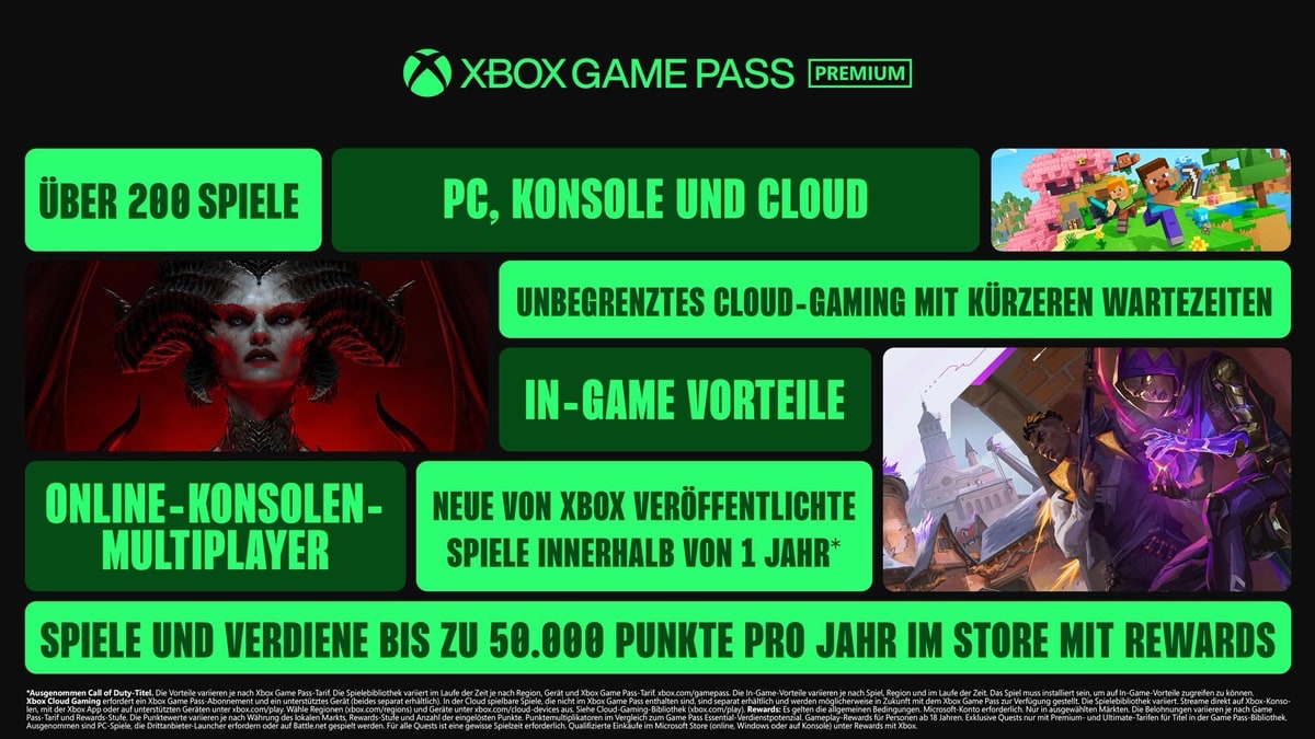 Der Premium-Plan für 12,99 Euro richtet sich an Spieler, die etwas flexibler sein möchten. Hier gibt es Zugriff auf über 200 Spiele, die auch auf dem PC spielbar sind. Xbox-Spiele kommen innerhalb eines Jahres nach Release in den Service, Call of Duty bleibt allerdings außen vor.