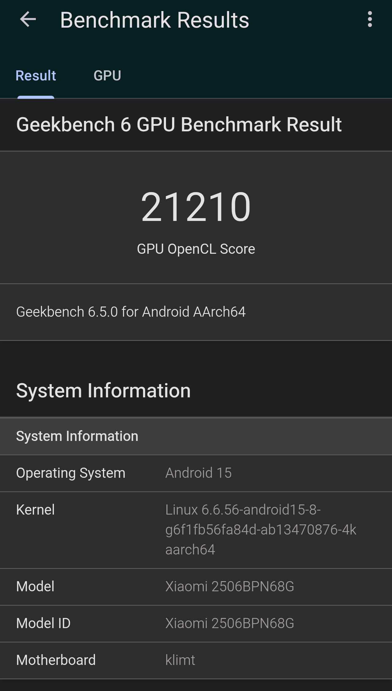 Xiaomi 15T Pro Geekbench GPU 1