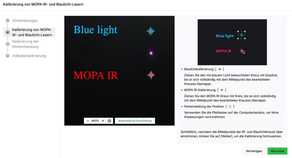 Praktisch: Den unterbrochenen bzw. abgebrochenen Laservorgang kann man dann aber an passender Stelle weiter fortführen lassen. Als weiteren Sicherheitsmechanismus setzt man wieder auf einen USB-Schlüssel: Ist dieser nicht eingesteckt, kann der Laser nicht betrieben werden.