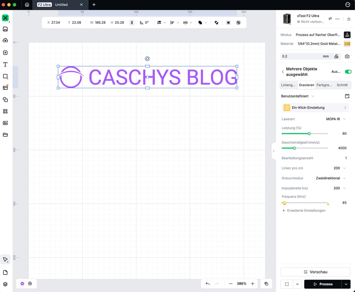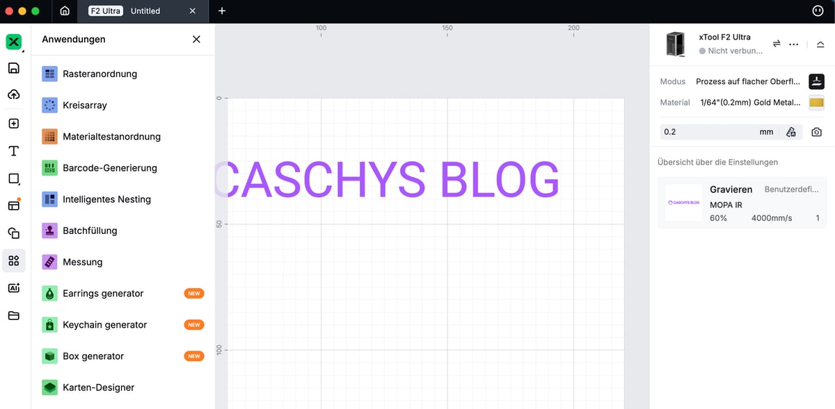 Was man wohl nicht mehr anbietet, ist die Kompatibilität mit Drittanbieter-Software wie Lightburn. Das ist wirklich schade, weil technisch (beispielsweise auch beim F1 Ultra) zu bewerkstelligen. xTool möchte Nutzer da aber wohl an die eigene Software binden. Die setze ich zwar sehr gerne ein, Offenheit gegenüber anderen Plattformen wäre aber – vor allem im professionellen Bereich, in dem man hier spielen möchte – angebracht.