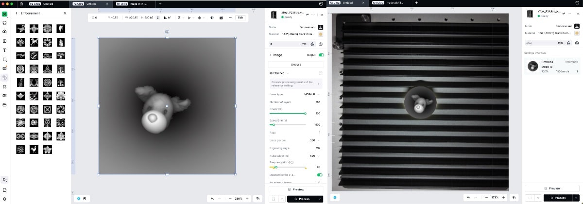 Die Reliefbearbeitung habe ich ebenfalls probiert, diese bedarf einer Tiefenkarte, darauf werde ich im xTool Studio-Teil etwas vertiefter eingehen.