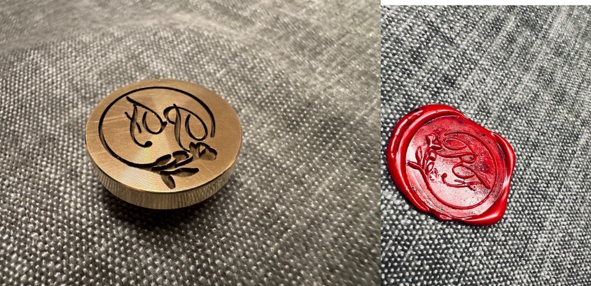 Beeindruckend war dann, wie sehr sich der MOPA-Laser im Modus Tiefengravieren – und das in rasendem Tempo, binnen Minuten, in das Messing eines Siegelstempels gefressen hat. Hier spielt der F2 Ultra dann wirklich seine Stärken aus, wenn es um das Personalisieren von Metallobjekten geht.