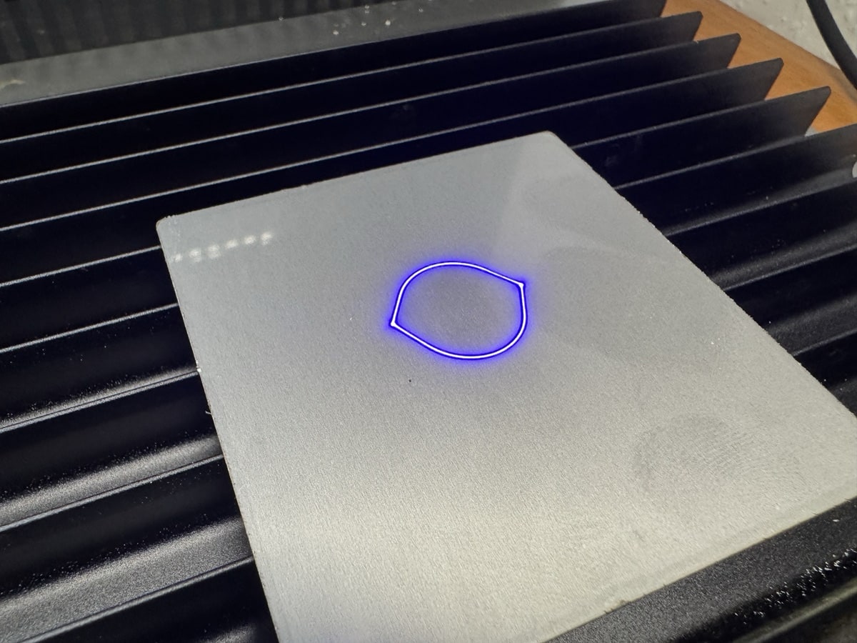 Im F2 Ultra kommen gleich zwei Kameras mit 48 Megapixeln zum Einsatz. Diese helfen bei der Ausrichtung von Material auf dem Arbeitsbereich. Das ist super hilfreich und eine echt prima Sache. Leider ist das Vorschaubild bei entsprechender Innenraumbeleuchtung teils sehr stark überbelichtet und man muss dann mit der Innenraumbeleuchtung manuell hantieren – das ist schade und könnte mit entsprechender automatischer Belichtung auch so funktionieren. Schön wäre auch, beim Schließen des Deckels würde automatisch ein Foto vorgehalten bzw. an die Software übermittelt. Zudem hätte ich als Feature doch sehr gerne einen Livestream zum aktuellen Prozess gesehen, wie das auch bei 3D-Druckern der Fall ist. Durch das abgedunkelte Schutzgehäuse kann man dem Bearbeitungsprozess nur eingeschränkt folgen. Zur Kontrolle kann mittels Laser auch immer ein Rechteck oder der komplette Umriss um den Bearbeitungsbereich gelegt werden, bevor man das „Go“ für die Bearbeitung gibt. Das war ein Feature, was mich wirklich begeistert hat, denn so sieht man direkt, ob die Ausrichtung passt und das Motiv auch wirklich auf das Material passt.