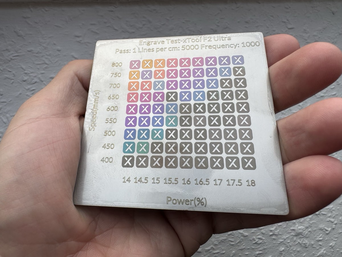 Ich habe viel mit den Materialproben aus dem beiliegenden Materialpaket experimentiert, aber auch sonst mit einigen eigenen Projekten zusätzlich herumgefuhrwerkt. Ganz unabhängig vom Material: Ein Lasergravierer und so auch der F2 Ultra ist derzeit nicht vergleichbar mit einem modernen 3D-Drucker, mit dem man zuverlässig und ohne viel Tamtam ordentliche Ergebnisse erhält. xTool kommt da mit Software und Co. zwar nahe ran, aber es gibt doch sehr viele Stellschrauben zu berücksichtigen und teils ist der Grat an Einstellungen doch sehr schmal. Gerade was die Farbgravuren angeht, mit Wellenlängen, Impulsbreiten und Co. Da ist dann doch häufiger mal Ausprobieren und Experimentierfreude angesagt.