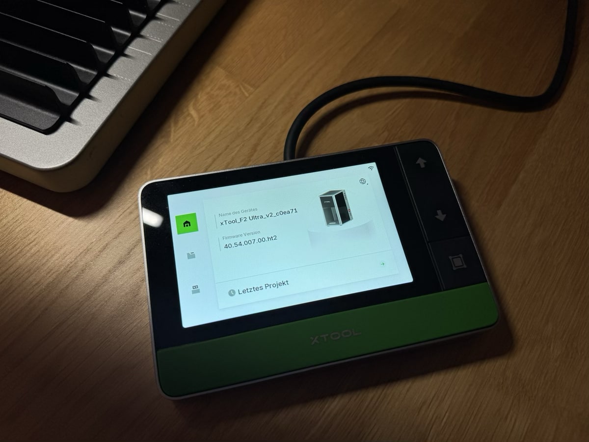 Die Einrichtungsprozedur geht schnell und reibungslos vonstatten. Nach erstmaliger kabelgebundener Einrichtung kann man den Laser ins heimische WLAN bringen. Das ist auch mein favorisierter Betriebsmodus, so muss man nicht direkt mit einem Notebook oder PC am F2 Ultra angesteckt sein, wenngleich man auch USB-Stick und Touchscreen verwenden könnte (mache ich am 3D-Drucker auch nie über den Screen). Man wird durch die Kalibrierung durchgeführt – das war’s und man kann wie gewohnt loslegen.
